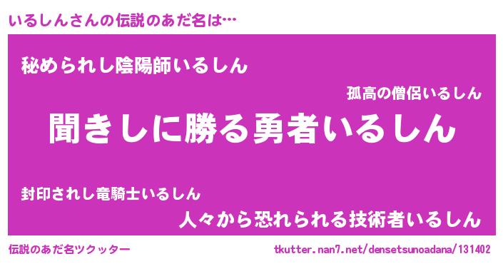 | ヒーロー風カッコイイあだ名 | 『ウルトラ戦士イルシン』『仮面イルダー』 |