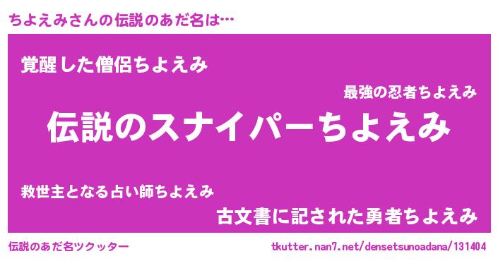 | ヒーロー風カッコイイあだ名 | 『スーパーチヨエミ』『最強戦士チヨエミ』 |