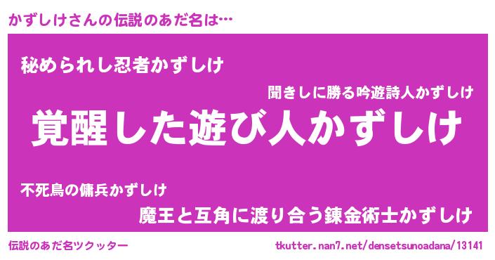 | 男性向けラノベタイトル風あだ名 | 『この素晴らしい世界にかずしけを!』 |