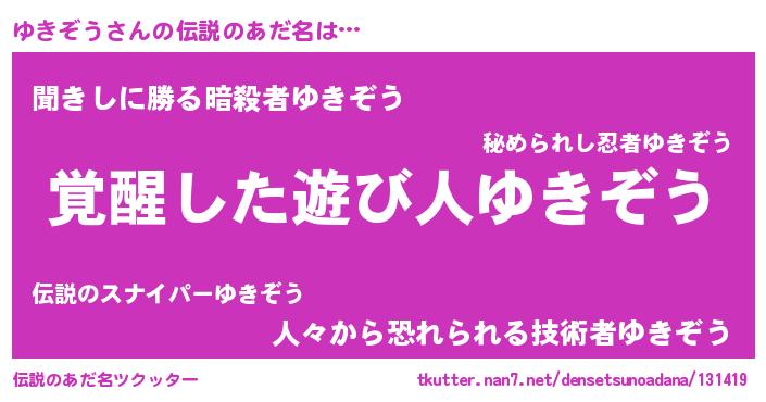 | ヘコむあだ名 | 『ゆきぷりん』『ゆきぞう(笑)』 |