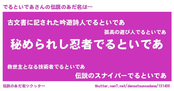 | 意味不明あだ名 | 『でるといであフォーエバー』 |