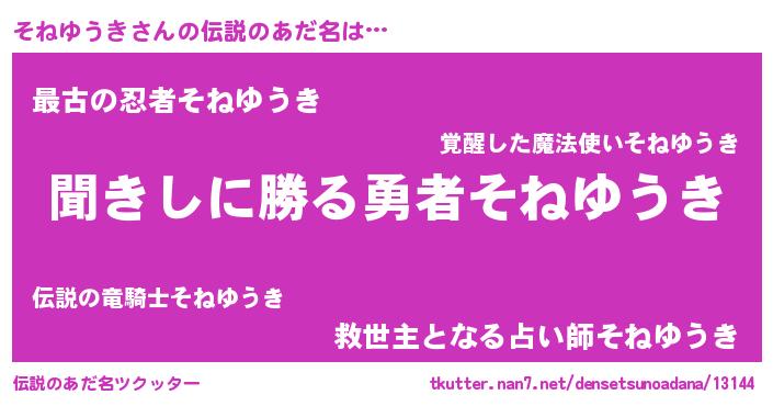 | 意味不明あだ名 | 『永久保存そねゆうき』『自称そねゆうき』 |