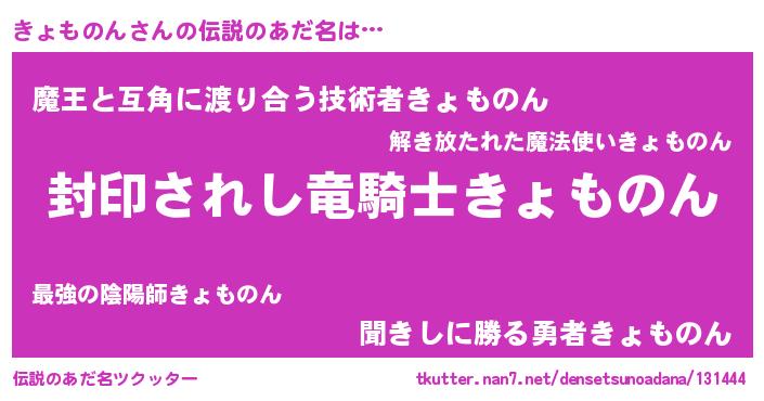 | 男性向けラノベタイトル風あだ名 | 『キョモノンアートオンライン』 |