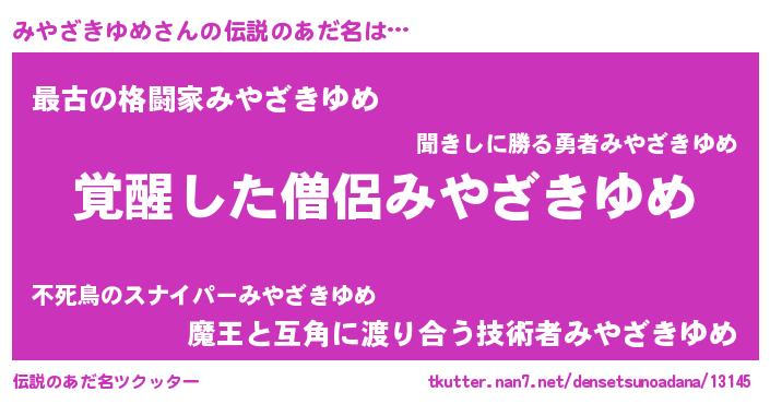 | 意味不明あだ名 | 『とにかく怪しいみやざきゆめ』 |