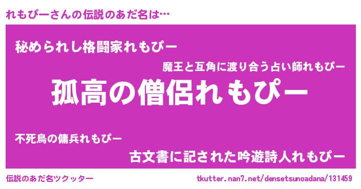 | 意味不明あだ名 | 『住所不定無職れもぴー(50歳)』 |