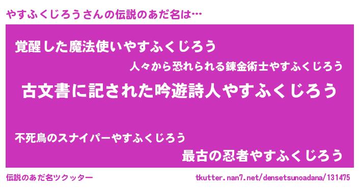 | 意味不明あだ名 | 『永久保存やすふくじろう』 |