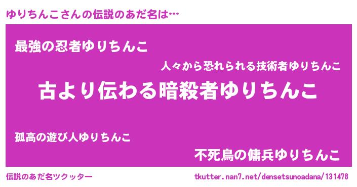 | 意味不明あだ名 | 『住所不定無職ゆりちんこ(14歳)』 |