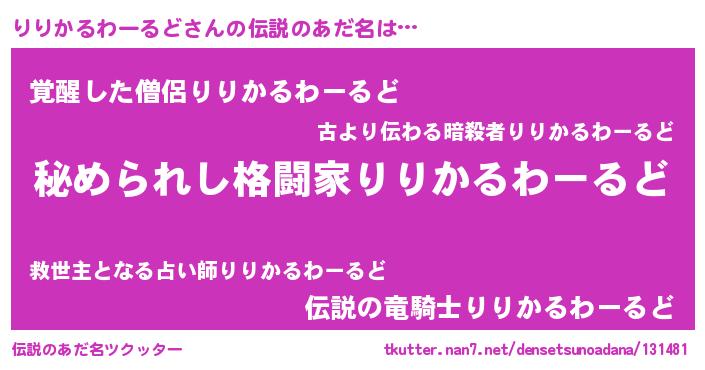 | ポケモン風あだ名 | 『リリカダネ』『ヒリリカルワールド』 |