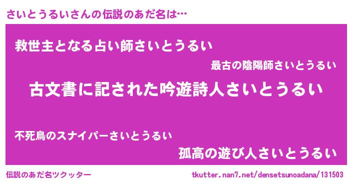 | 胡散臭い通販商品みたいなあだ名 | 『芸能人もオススメする高麗人参…その名も「さいとうるい」』 |