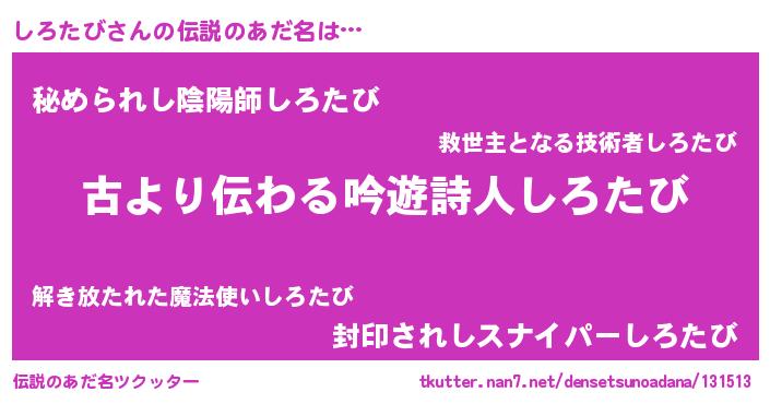 | ヒーロー風カッコイイあだ名 | 『仮面シロダー』『ネオシロタビ』 |