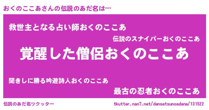 | 意味不明あだ名 | 『とにかく怪しいおくのここあ』 |