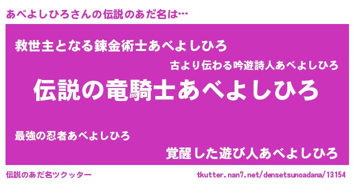 | 男性向けラノベタイトル風あだ名 | 『あべよしひろの憂鬱』 |