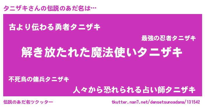 | 男性向けラノベタイトル風あだ名 | 『ダンジョンにタニザキを求めるのは間違っているだろうか』 |