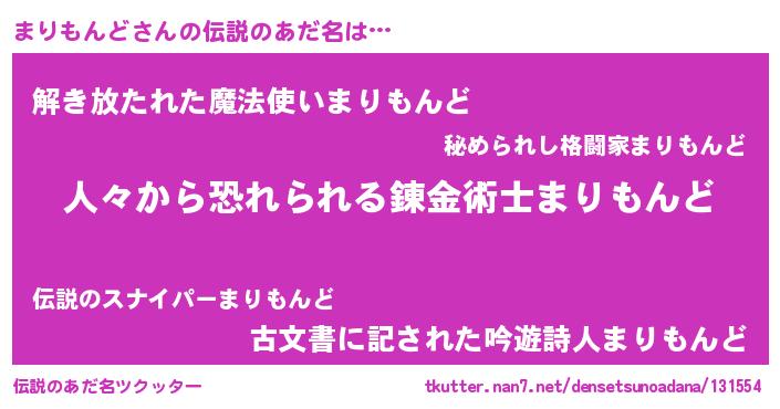 | 女子向けラノベタイトル風あだ名 | 『シンデレラまりもんど家の靴箱館』 |