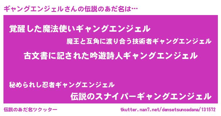 | ヘコむあだ名 | 『ギャングエンジェル(笑)』『ギャを』 |