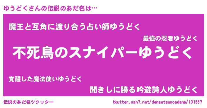 | ヒーロー風カッコイイあだ名 | 『スーパーユウドク』『仮面ユウダー』 |