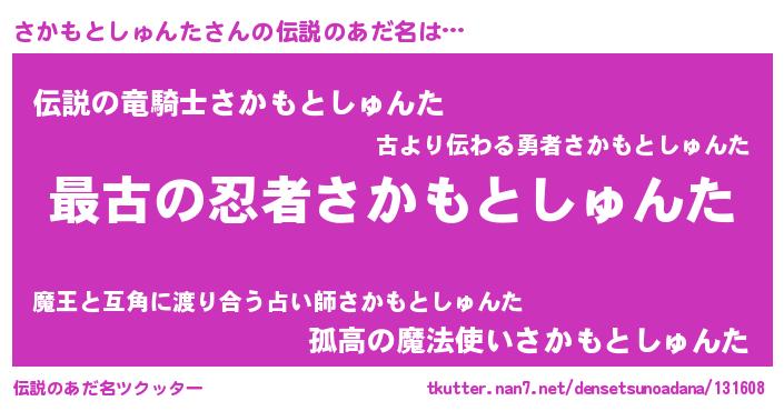 | 意味不明あだ名 | 『自称さかもとしゅんた』 |