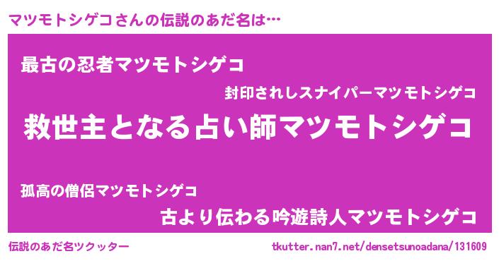 | 男性向けラノベタイトル風あだ名 | 『ノーゲーム・ノーマツモトシゲコ』 |