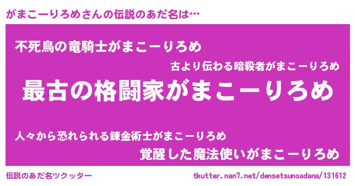 | ファンタジー風あだ名 | 『エターナルガマコーリロメー』 |