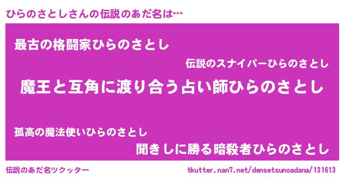 | ヒーロー風カッコイイあだ名 | 『サイバー戦士ヒラノサトシ』 |