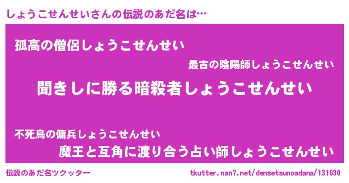 | 胡散臭い通販商品みたいなあだ名 | 『絶対に幸福をもたらす健康食品…その名も「しょうこせんせい」』 |