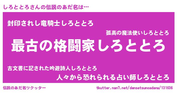 | 意味不明あだ名 | 『しろととろフォーエバー』 |