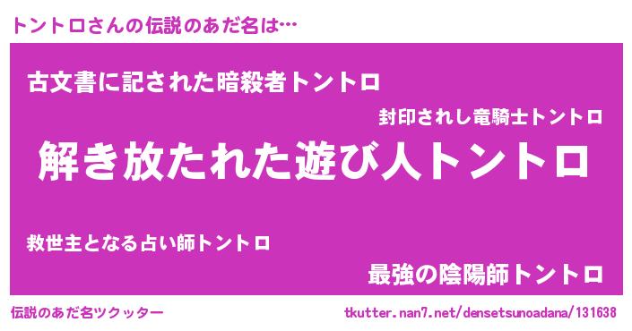 | ヒーロー風カッコイイあだ名 | 『仮面トンダー』『天弓騎士トン』 |