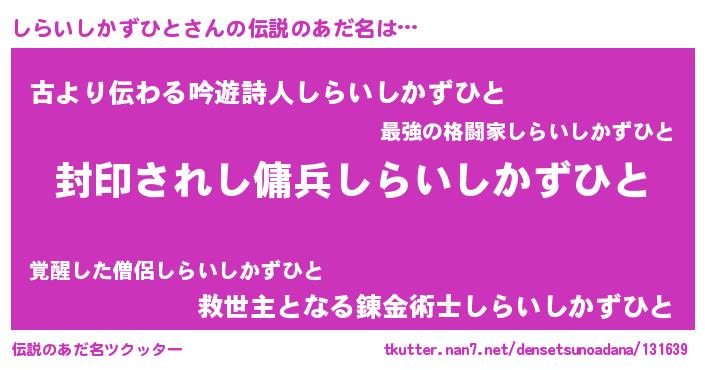 | ヒーロー風カッコイイあだ名 | 『スーパーシライシカズヒト』 |