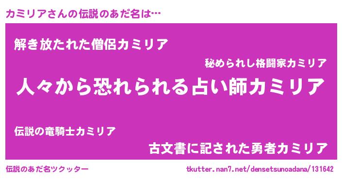 | ヒーロー風カッコイイあだ名 | 『友情の使者カミリア』『幻影騎士カミ』 |