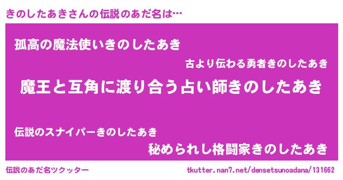 | 料理風あだ名 | 『きのしたあきごはん』 |