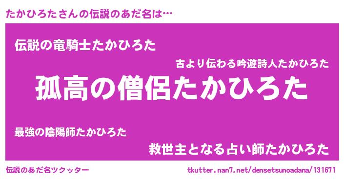 | ヒーロー風カッコイイあだ名 | 『暗黒騎士タカ』『スーパータカヒロタ』 |
