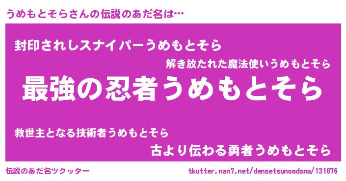 | 意味不明あだ名 | 『うめもとそらフォーエバー』 |