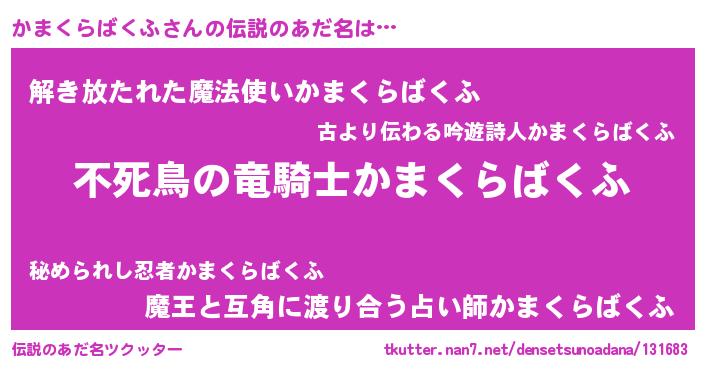 | 女子向けラノベタイトル風あだ名 | 『かまくらばくふ姫と円卓の騎士』 |