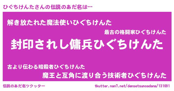 | 女子向けラノベタイトル風あだ名 | 『誰かこのひぐちけんたを説明してください! ~契約から始まるウェディング~』 |