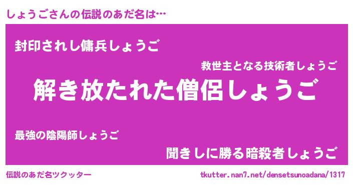 | ヒーロー風カッコイイあだ名 | 『銀牙騎士ショ』『仮面ショダー』 |