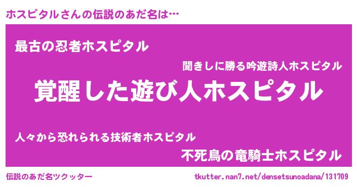 | ヒーロー風カッコイイあだ名 | 『炎刃騎士ホス』『スーパーホスピタル』 |