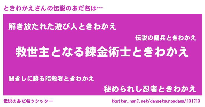 | ヒーロー風カッコイイあだ名 | 『慈愛の使者ときわかえ』『銀牙騎士トキ』 |