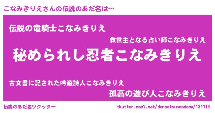 | 欧米人風あだ名 | 『こなみきりえクリステル』 |
