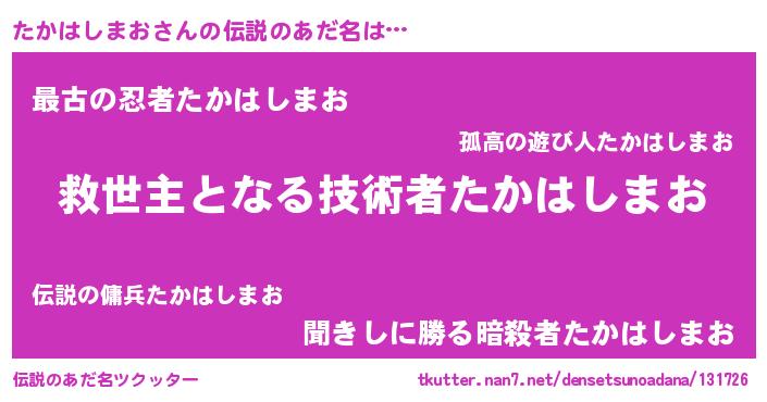 | ヒーロー風カッコイイあだ名 | 『天空の使者たかはしまお』 |