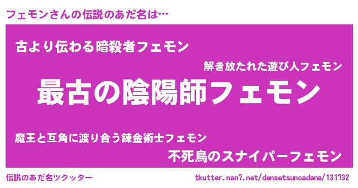 | ポケモン風あだ名 | 『フェモダネ』『ゼニフェ』 |