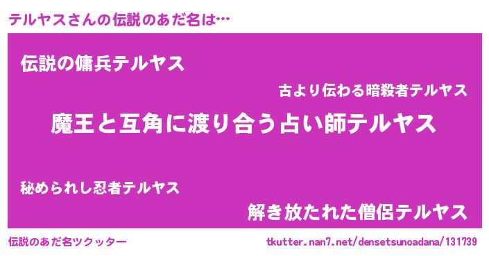 | 女子向けラノベタイトル風あだ名 | 『テルヤス恋絵巻』 |