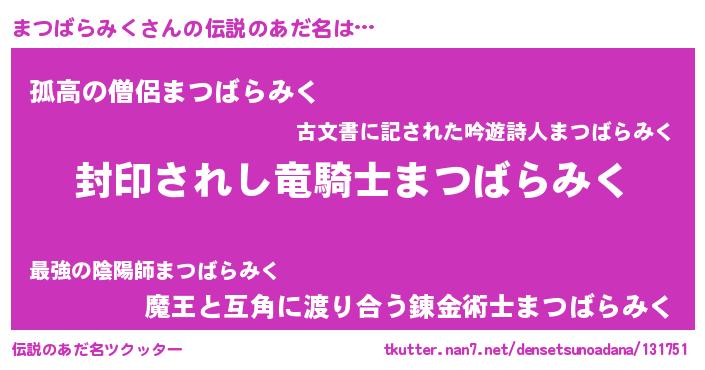 | 欧米人風あだ名 | 『マイケルまつばらみく』 |