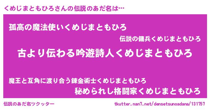 | ヘコむあだ名 | 『くめじまともひろ(小並感)』『くめを』 |
