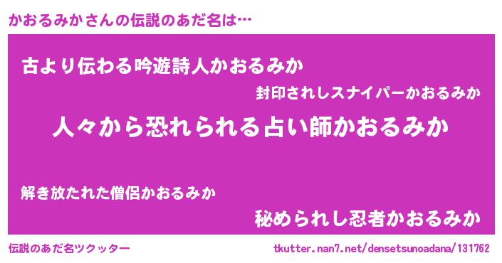 | 意味不明あだ名 | 『眠気覚ましガムかおるみか味』 |