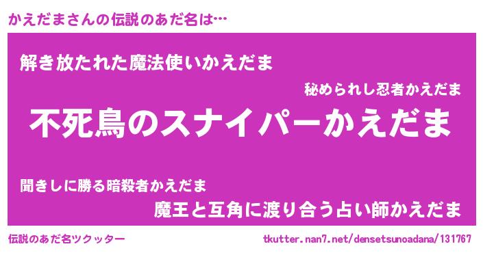 | ヒーロー風カッコイイあだ名 | 『スーパーカエダマ』『暗黒騎士カエ』 |