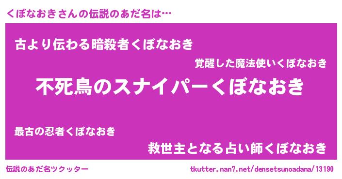 | ヒーロー風カッコイイあだ名 | 『スーパークボナオキ』『ネオクボナオキ』 |