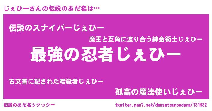 | ヒーロー風カッコイイあだ名 | 『最強戦士ジェヒー』『スーパージェヒー』 |