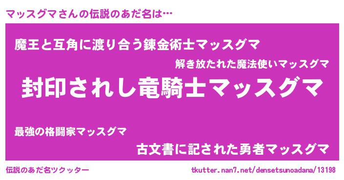 | ヘコむあだ名 | 『マッふぇ~』『マッスグマ(遠い目)』 |