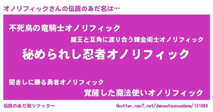 | 意味不明あだ名 | 『自称オノリフィック』 |