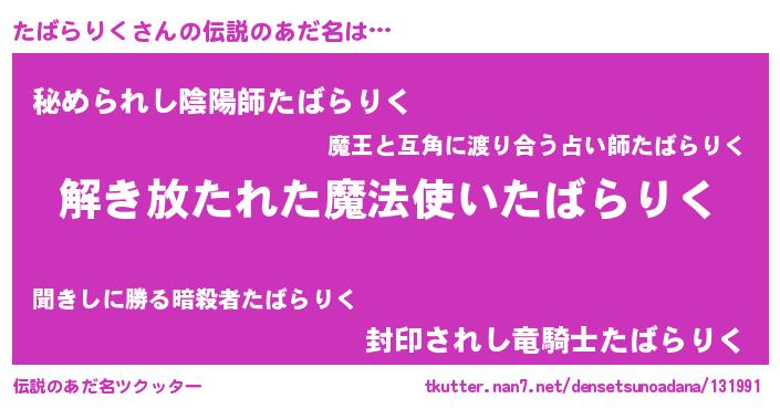 | 胡散臭い通販商品みたいなあだ名 | 『伝統あるサプリメント…その名も「たばらりく」』 |